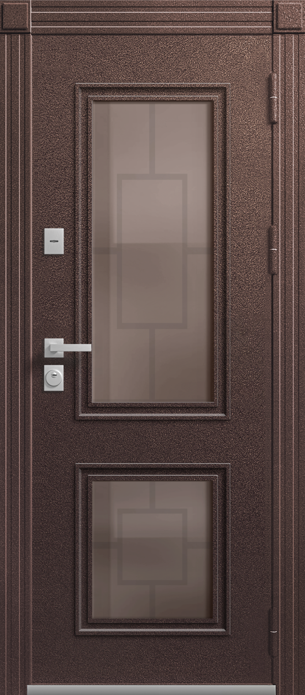 В конструкции двери Т-1 Премиум используется двухкамерный стеклопакет толщиной 48 мм, с низкоэмиссионным энергосберегающим покрытием, сохраняющим тепло внутри дома. С внешней части стеклопакета установлена декоративная металлическая решетка. Эта дверь станет украшением Вашего дома